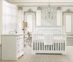 Natart Juvenile Natart Taylor – Lit De Bébé Convertible 5-en-1 Avec Panneau Rembourré, Lin Gris