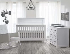 Natart Juvenile Natart Ithaca – Lit De Bébé Convertible 5-en-1 Avec Panneau Rembourré, Lin Tissé Fog