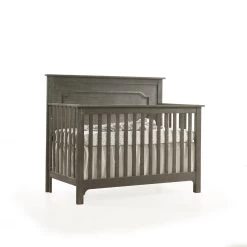 Natart Juvenile Nest Emerson – Lit De Bébé Convertible 5-en-1 Avec Panneau Rembourré, Lin Tissé Fog