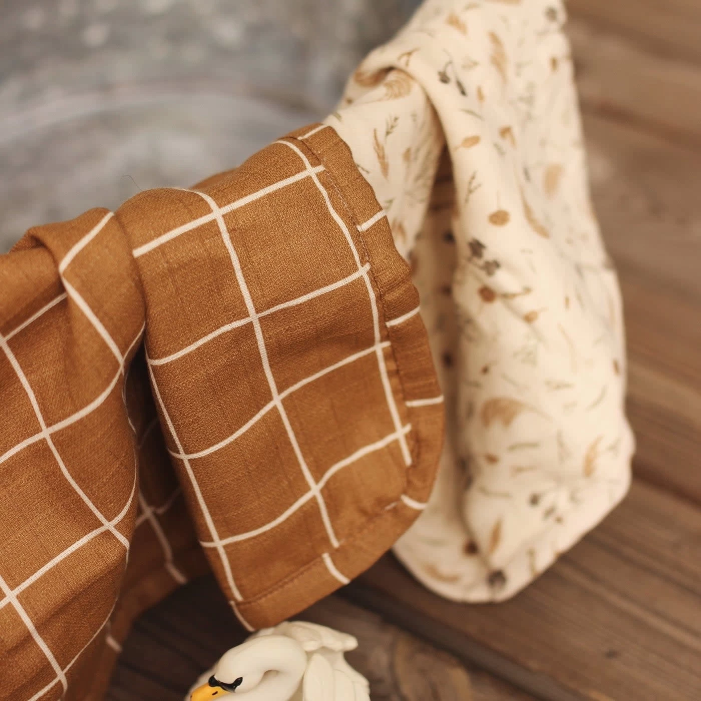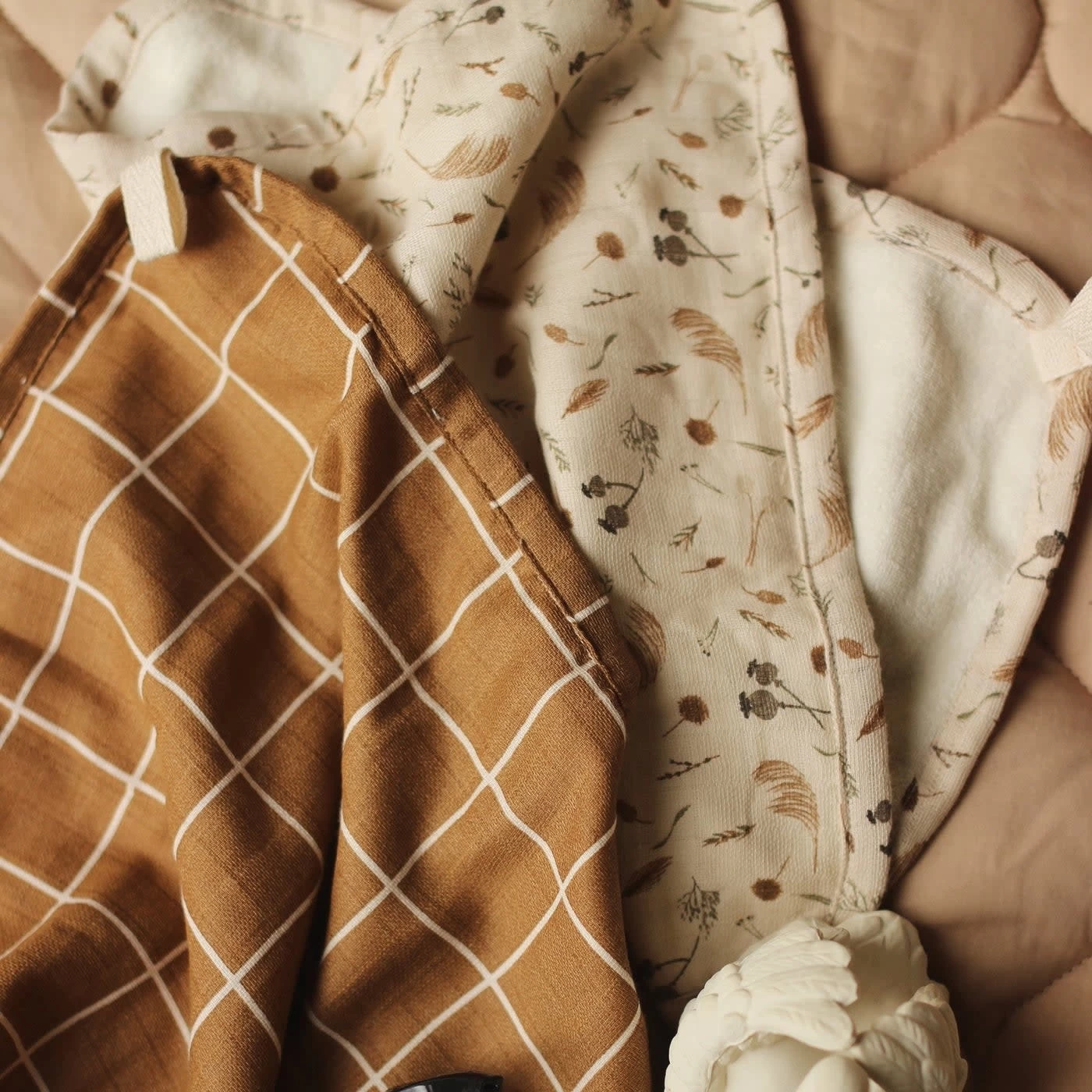 – 100% mousseline de coton biologique, avec tissu éponge au dos