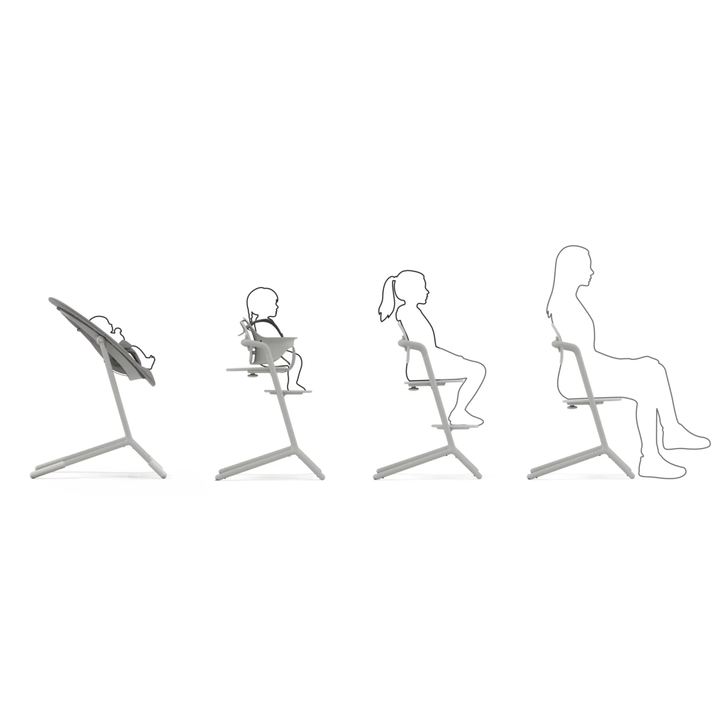 La chaise haute Cybex Lemo offre de multiples configurations qui grandissent avec votre bébé et s’intègrent parfaitement à votre style de vie. Utilisez simplement les accessoires adaptés à l’âge de votre enfant et la chaise haute Lemo peut être utilisée dès la naissance et bien au-delà.