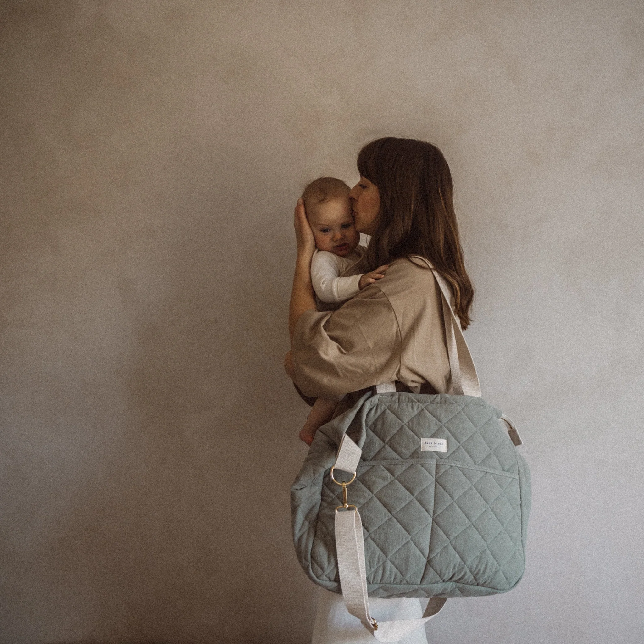 Ce magnifique sac à couches en coton permet de transporter tout ce dont vos minis et vous avez besoin. Spacieux et solide, il est l’indispensable pour tous vos déplacements!