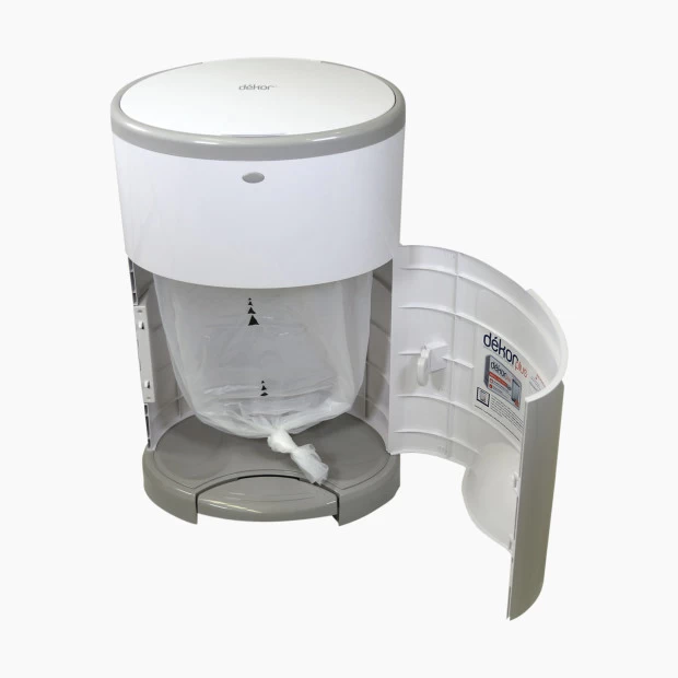 – Contrôle des odeurs (la trappe à ressort permet de recevoir les couches tout en retenant les odeurs dans la poubelle)