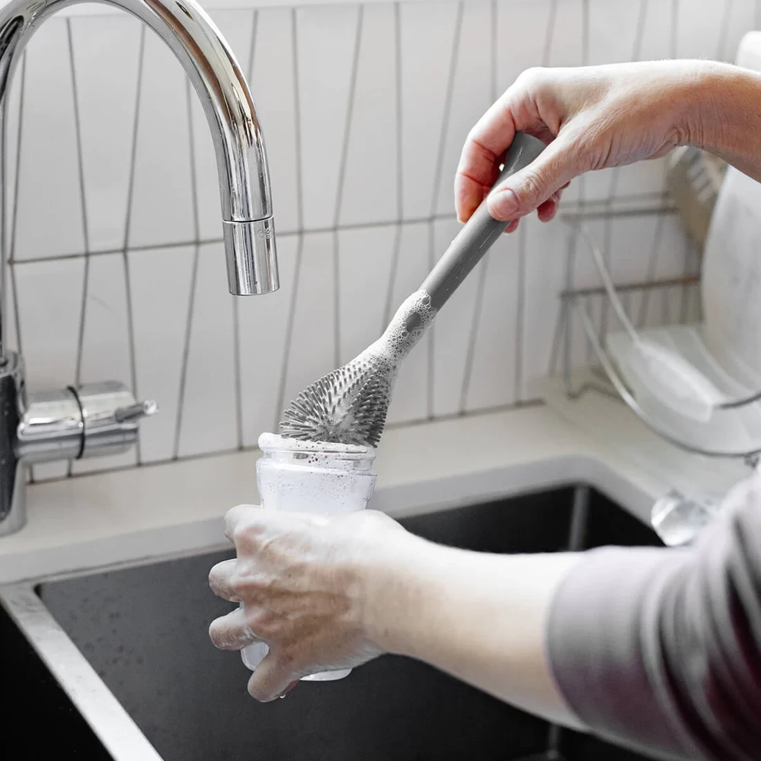 – Poignée longue et robuste qui peut nettoyer les biberons, les bouteilles d’eau, les tasses et les ustensiles de cuisine