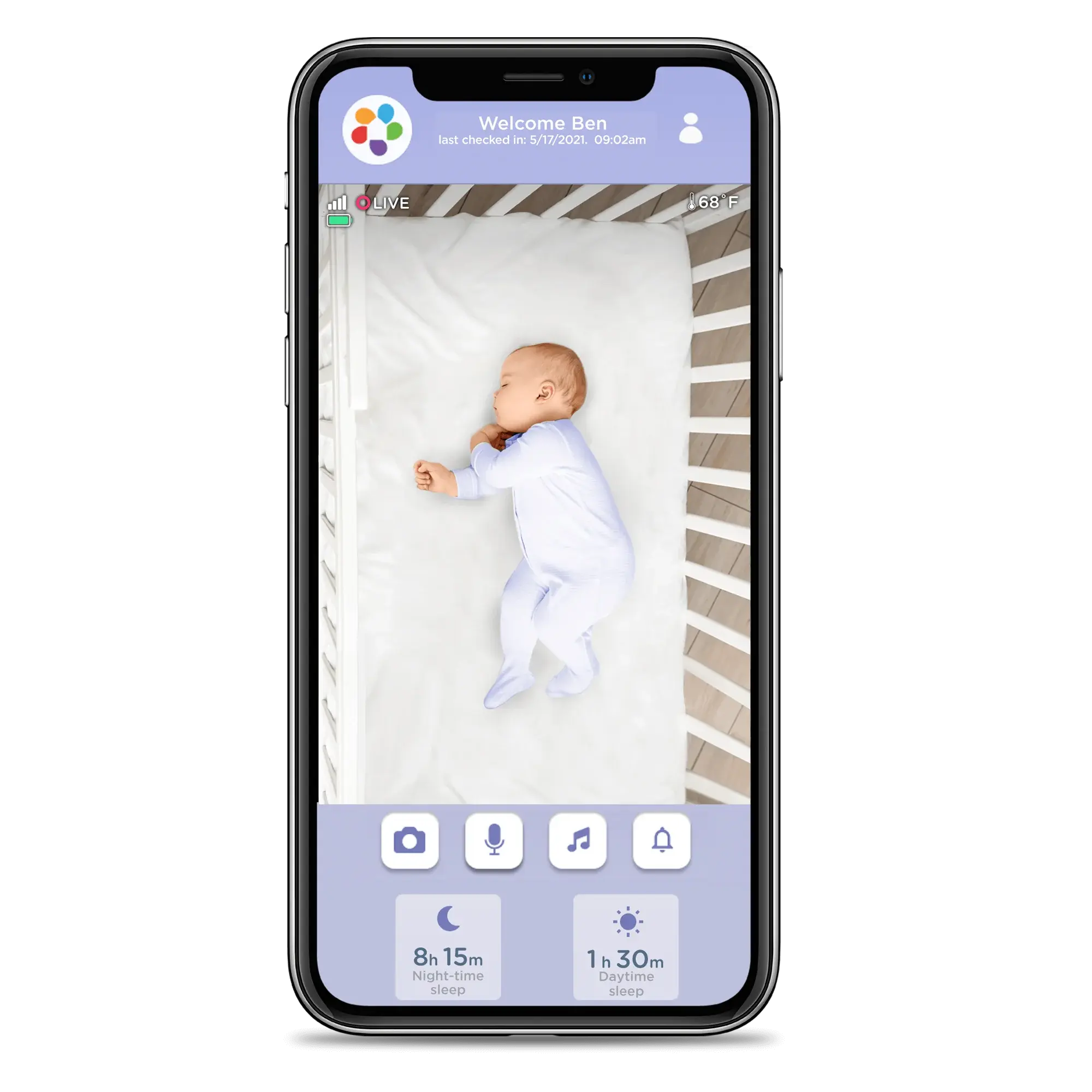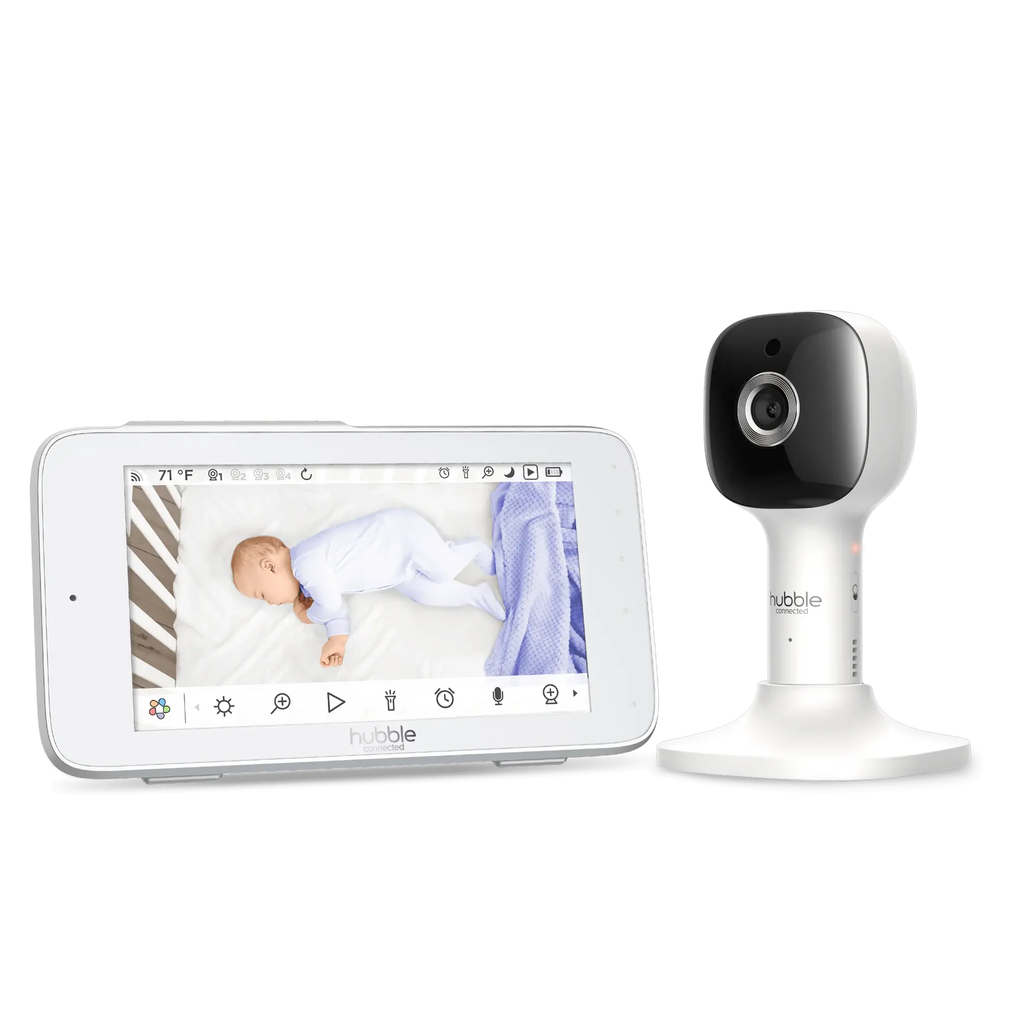 Offrez-vous la tranquillité d’esprit que vous méritez avec l’ensemble caméra et vidéo HD intelligent Cloud de Hubble. Avec une qualité d’image haute définition immaculée, l’unité parentale intelligente de 5 pouces maintient une vision parfaite de votre tout-petit, de jour comme de nuit. Suivez les conditions de la chambre avec le moniteur de température ambiante et apaisez votre bébé avec le doux son de votre voix en utilisant la communication bidirectionnelle ou encore grâce à des sons de la nature, des berceuses et des histoires pré-chargés. Avec sa veilleuse de 7 couleurs et sa fonction d’entraînement du sommeil, Cloud est plus qu’un simple moniteur pour bébé!