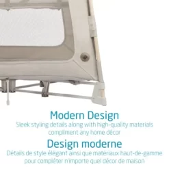 Polyvalent et élégant, ce parc de voyage 3-en-1 peut être utilisé comme berceau pour nouveau-né, espace de sieste pour tout-petits ou encore comme coin de jeu sécuritaire et robuste. Avec son pliage ultra simple et rapide, le parc Swift peut facilement se monter et se démonter avec une seule main. Parfait pour les journées bien remplies!