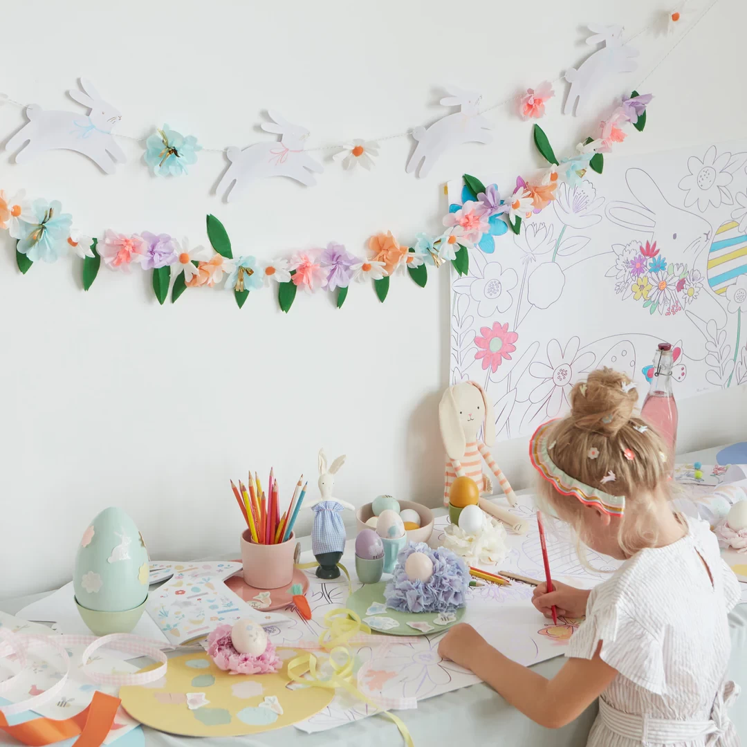Ces magnifiques guirlandes sont parfaites pour ajouter une touche de beauté printanière à votre rassemblement de Pâques ou à toute fête spéciale. Ils présentent des lapins bondissants, des fleurs et des feuilles.