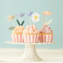 Transformez vos petits gâteaux en magnifiques œuvres d’art florales avec cet ensemble spécial. Il comprend des moules en papier à rayures roses et blanches et des décorations avec 11 beaux motifs floraux.