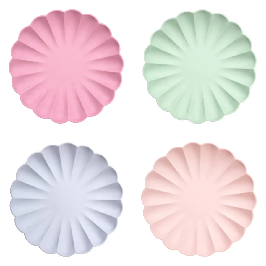 Ces belles assiettes sont fabriquées à partir de bambou naturel et compostable, de fibre de bois et de canne à sucre, offrant une alternative plus écologique aux articles de fête. Teints dans de douces couleurs pastel, ils complèteront parfaitement toute table festive.