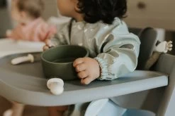 Le bavoir à manches longues de Micasso & Co est conçu pour répondre aux besoins des jeunes enfants. Sa pochette pratique, placée à la bonne hauteur, permet d’attraper facilement la nourriture qui pourrait tomber en cours de repas.