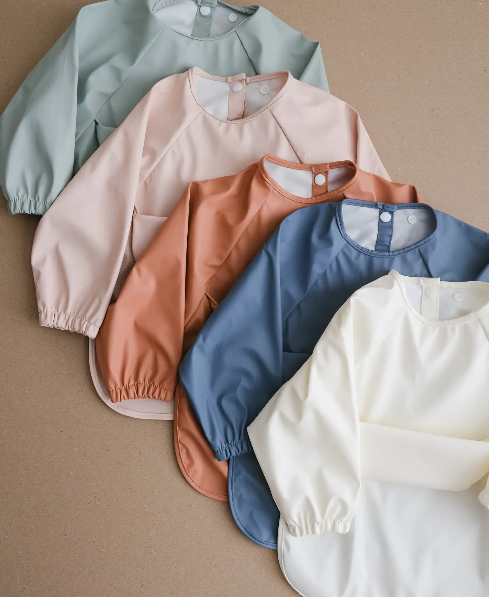 Le bavoir à manches longues de Micasso & Co est conçu pour répondre aux besoins des jeunes enfants. Sa pochette pratique, placée à la bonne hauteur, permet d’attraper facilement la nourriture qui pourrait tomber en cours de repas.