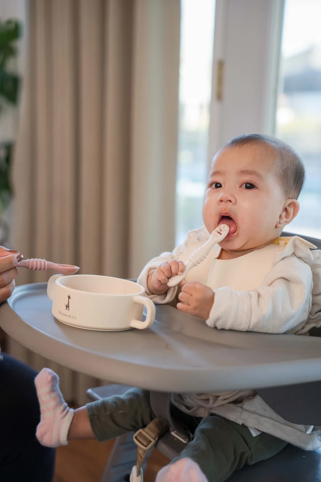 Ce bavoir en silicone est ajustable, imperméable, doux et flexible! Grâce à sa grande poche de récupération, les miettes et petits morceaux d’aliments seront capturés, évitant ainsi de tomber sur les jambes de votre tout-petit ou sur le sol.