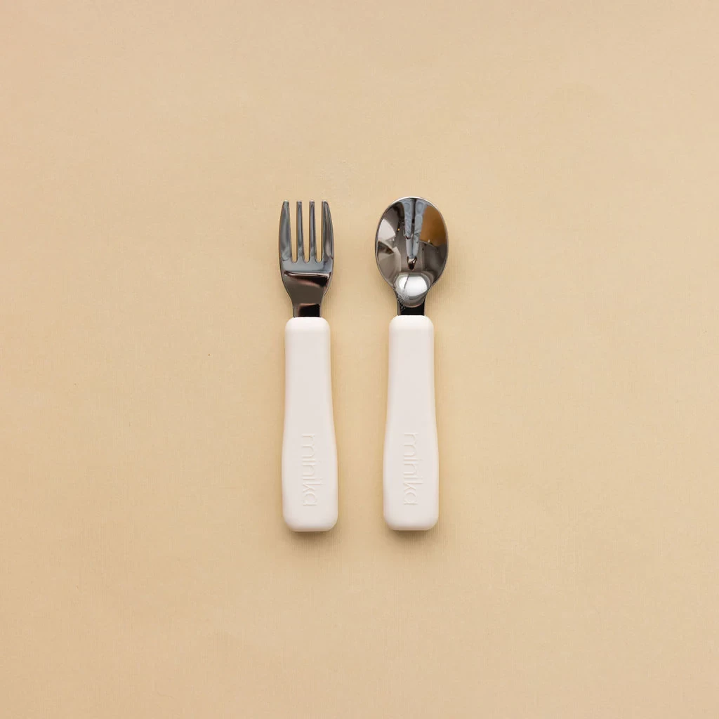 Avec des poignées anti-dérapantes en silicone, cet ensemble de fourchette et cuillère est adaptée pour les petites mains. Conçus pour les tout-petits qui prennent de l’assurance avec leurs ustensiles, leurs bouts en acier inoxydable facilitent la prise des aliments plus durs.
