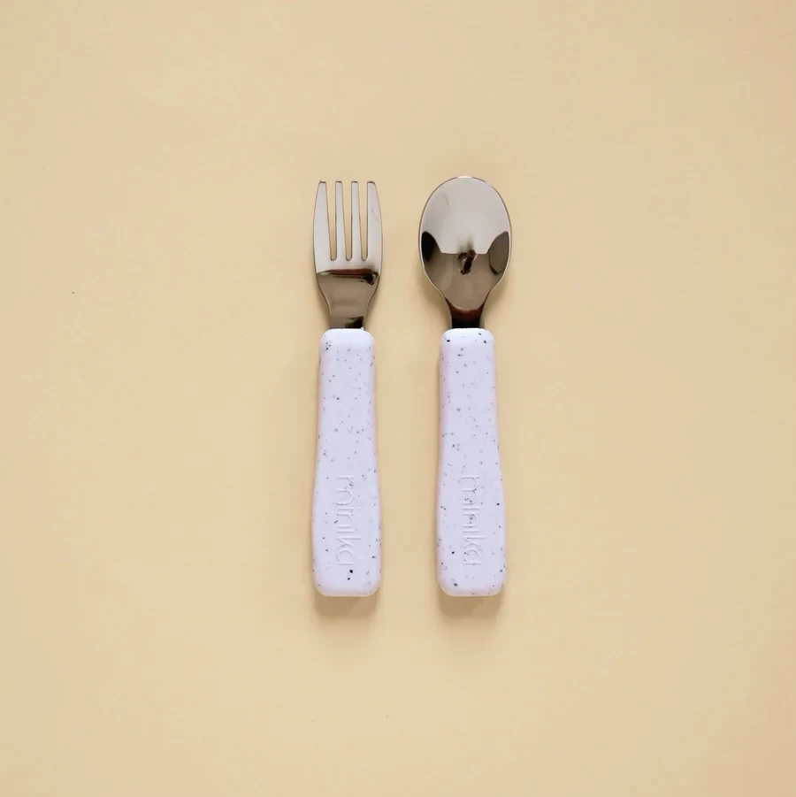 Avec des poignées anti-dérapantes en silicone, cet ensemble de fourchette et cuillère est adaptée pour les petites mains. Conçus pour les tout-petits qui prennent de l’assurance avec leurs ustensiles, leurs bouts en acier inoxydable facilitent la prise des aliments plus durs.