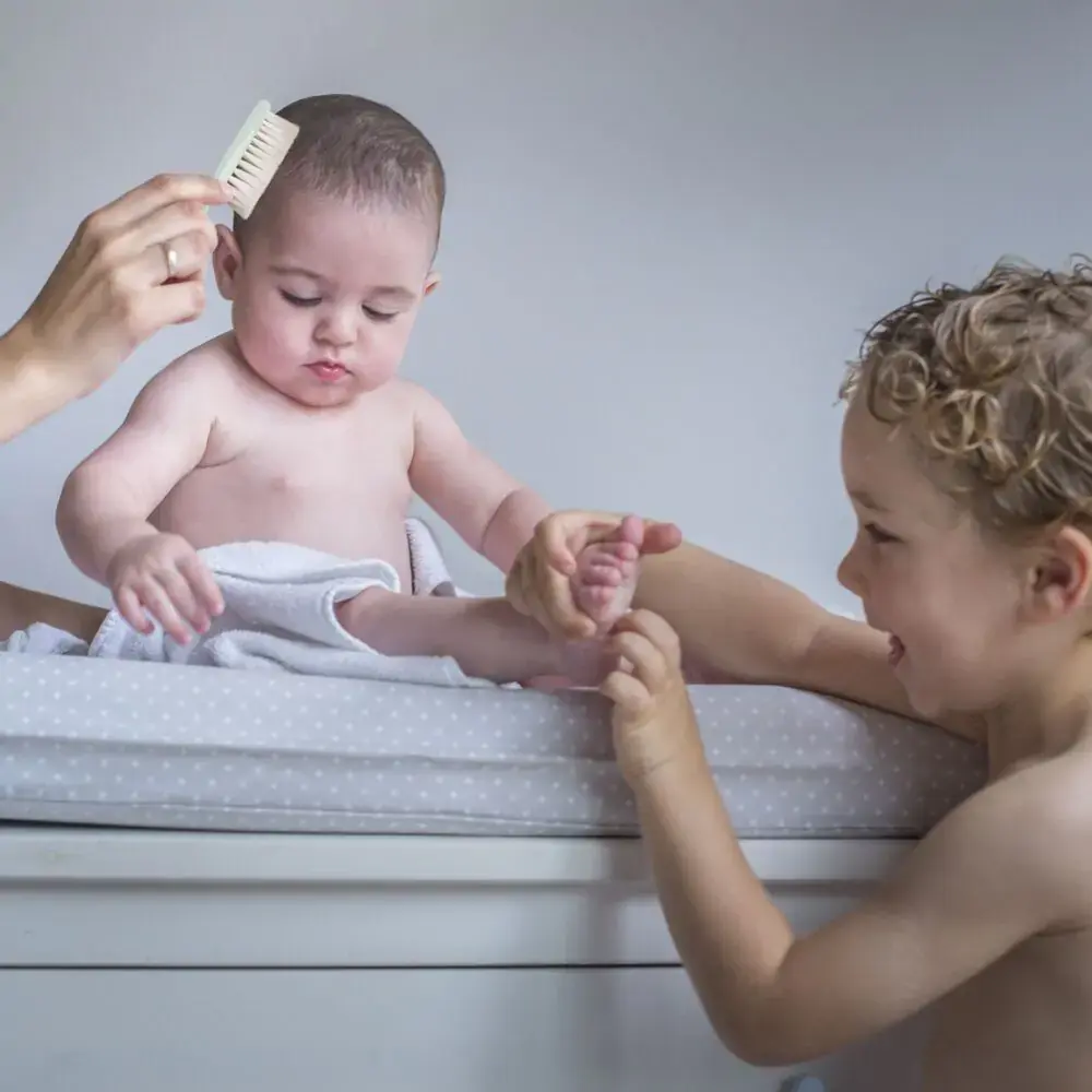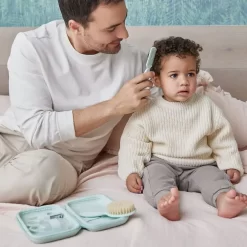 – Comprend 6 accessoires: un peigne, une brosse douce, des ciseaux, une brosse à gencives en silicone, un coupe-ongles et des limes à ongles pour bébé