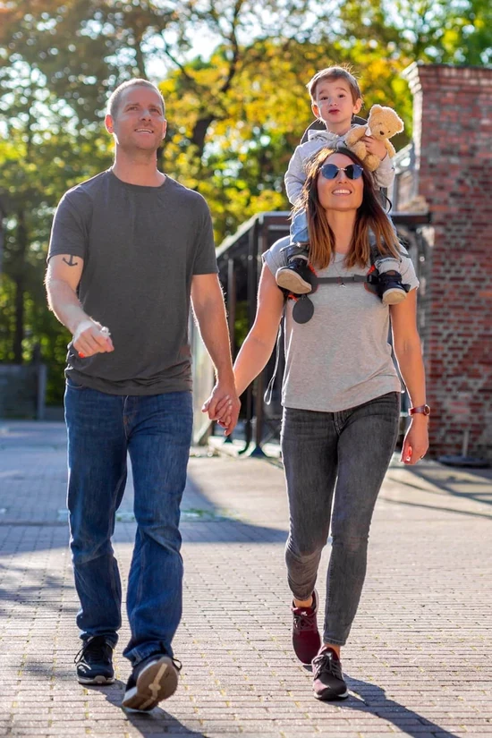 – Poids de l’enfant réparti uniformément par le porte-bébé, permettant de longues promenades dans le confort
