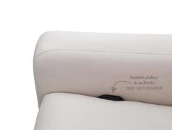 – La poignée pour activer le repose-pied escamotable est nichée entre le siège et l’appui-bras