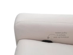– Poignée cachée pour activer le repose-pieds escamotable, nichée entre le siège et l’accoudoir