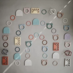 Apaisez les gencives endolories de votre bébé grâce à cette magnifique gamme de balles de dentition. Elles sont sécuritaires pour votre bébé et faciles à agripper pour les petites mains. Leurs designs géométriques et leurs couleurs sophistiquées font un ajout élégant à votre maison!