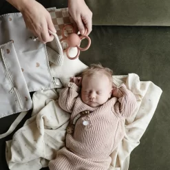 – Poignée avec fermeture à bouton-pression pour l’attacher facilement à une poussette ou à un sac pour bébé