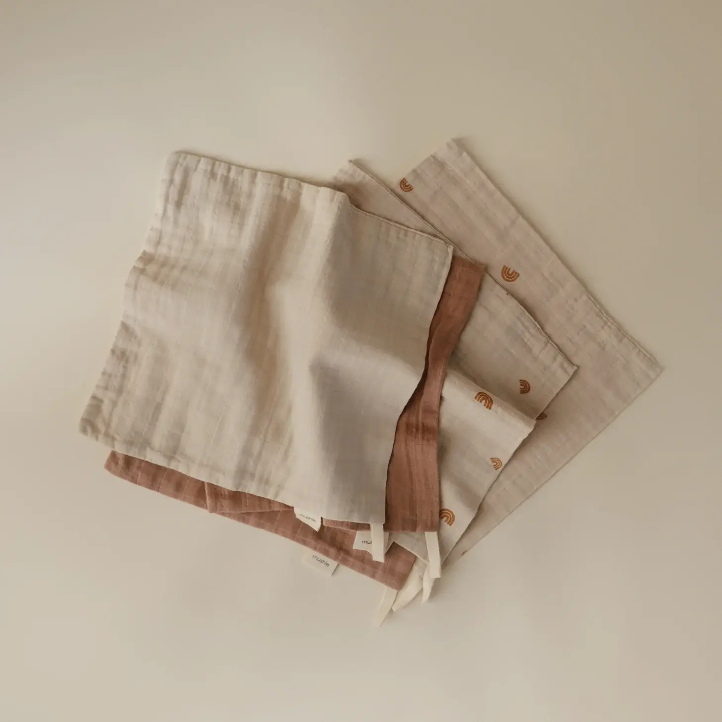 Fabriquées en coton doux 100% biologique, ces débarbouillettes en mousseline sont indispensables pour nettoyer la peau délicate de votre mini à l’heure du bain, pour essuyer les dégâts aux repas et à tout moment entre les deux. D’une taille idéale pour le bain et pour se glisser facilement dans un sac à langer, elles sont faites d’une mousseline douce pour la peau, mais suffisamment résistante pour être lavées en machine et utilisées de manière quotidienne.
