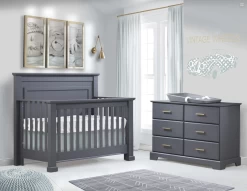 La collection Taylor offre un style classique avec des accents contemporains grâce à ses contours biseautés et ses façades avant de tiroir garnies de poignées italiennes. Elle est également dotée de jambes massives et de détails de cadrage raffinés, composant un meuble avec une prestance distinguée. Cette collection épurée et élégante est également intemporelle, prête à accompagner votre enfant pour les années à venir.