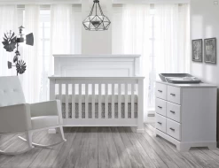 La collection Taylor offre un style classique avec des accents contemporains grâce à ses contours biseautés et ses façades avant de tiroir garnies de poignées italiennes. Elle est également dotée de jambes massives et de détails de cadrage raffinés, composant un meuble avec une prestance distinguée. Cette collection épurée et élégante est également intemporelle, prête à accompagner votre enfant pour les années à venir.