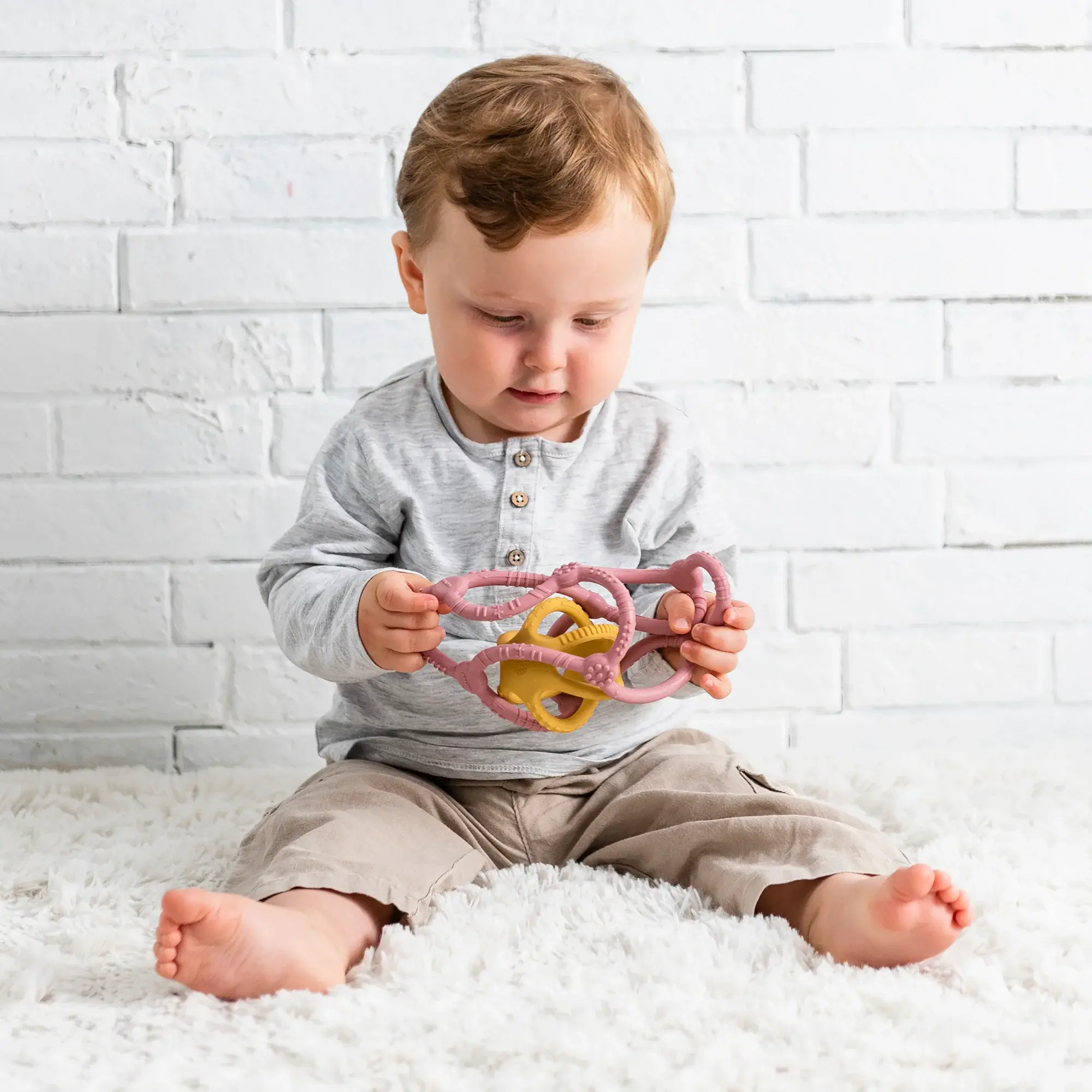 Deux boules en une avec une double fonction! En tant qu’anneau de dentition souple, ces boules en silicone procurent un massage bénéfique aux gencives, soulageant de manière sensible l’inconfort des premières dents. En tant que hochet, les deux boules conviennent parfaitement aux petites mains de votre mini.