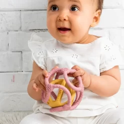 Deux boules en une avec une double fonction! En tant qu’anneau de dentition souple, ces boules en silicone procurent un massage bénéfique aux gencives, soulageant de manière sensible l’inconfort des premières dents. En tant que hochet, les deux boules conviennent parfaitement aux petites mains de votre mini.