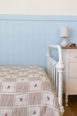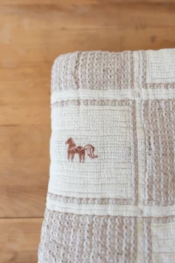 Polyvalente, cette grande couverture au look vintage deviendra rapidement votre préférée! Avec son rebord en dentelle et ses jolis poneys brodés, elle est parfaite pour ajouter une touche délicate au lit de votre tout-petit.