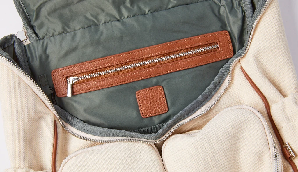– Fabriqué à partir de toile de coton naturel résistante à l’eau avec des détails en cuir véritable d’origine responsable