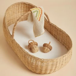 Ce hochet en rotin tressé à la main s’inspire de la nature. Avec une clochette à l’intérieur et une petite poignée pour l’installer sur un moïse ou un berceau, c’est une décoration parfaite que votre tout-petit adorera regarder.
