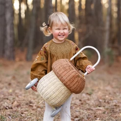 Ce panier en osier aux inspirations vintage vous charmera autant que votre tout-petit. Solide et durable, il peut aussi bien servir d’élément de décoration, que de rangement que de chariot pour transporter les trésors de votre mini.