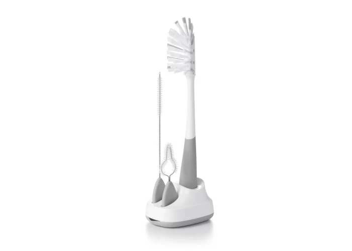 Cet ensemble de brosses OXO est simplement parfait pour nettoyer facilement et en profondeur les bouteilles et biberons de vos tout-petits!