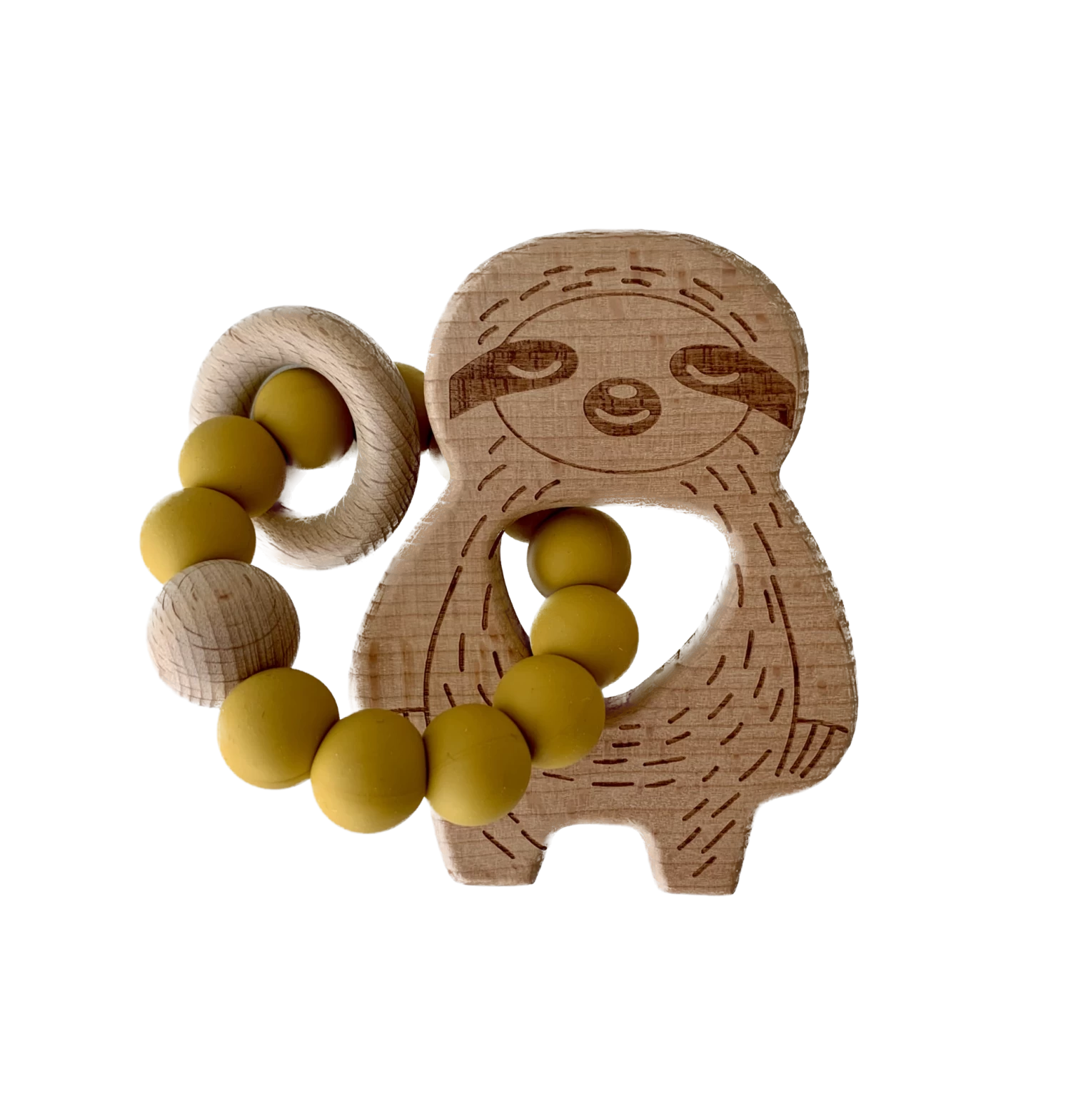 Bébé appréciera le mélange des textures du bois et du silicone qui éveilleront ses sens, l’aideront à soulager la douleur associée à la poussée dentaire ainsi qu’à développer sa motricité fine. Sans oublier le joli cliquetis émis par le bois qui s’entrechoque lorsque bébé secoue son hochet: divertissement garanti!