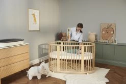 Stokke® Sleepi est un lit évolutif qui grandit avec votre enfant de 0 à environ 5 ans. Il se convertit facilement d’un lit de bébé confortable à un lit ouvert pour jeune enfant, sans extension nécessaire, tout en maintenant sa forme ovale familière et distinctive.
