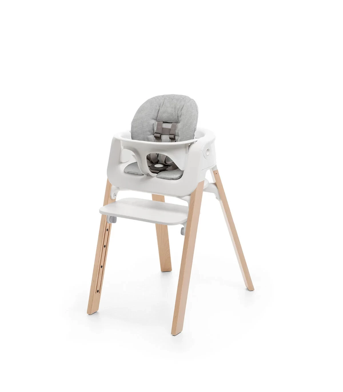 Stokke® Steps™ est un système de chaise 5 en 1 conçu pour répondre aux besoins de votre enfant à chaque étape. Ce concept simple à utiliser offre une large gamme d’assises ergonomiques; du transat confortable avec un mouvement de berceau unique, à la chaise haute fonctionnelle et plus tard, la chaise au design scandinave moderne qui peut être utilisée tout au long de l’enfance.